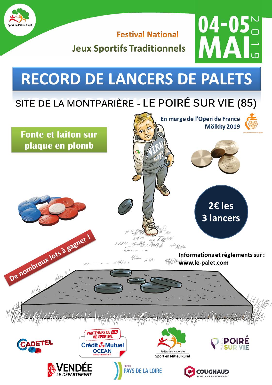 Bonjour à tous, au vu de la situation actuelle (COVID-19) et des trop nombreuses incertitudes concernant son organisation, en accord avec les clubs de Montournais et La Meilleraie-Tillay, ainsi que la CVDP et le CRSMR Pays de la Loire, nous vous informons que la Coupe de France Palet Fonte prévue le 2 Mai 2020 est annulée.