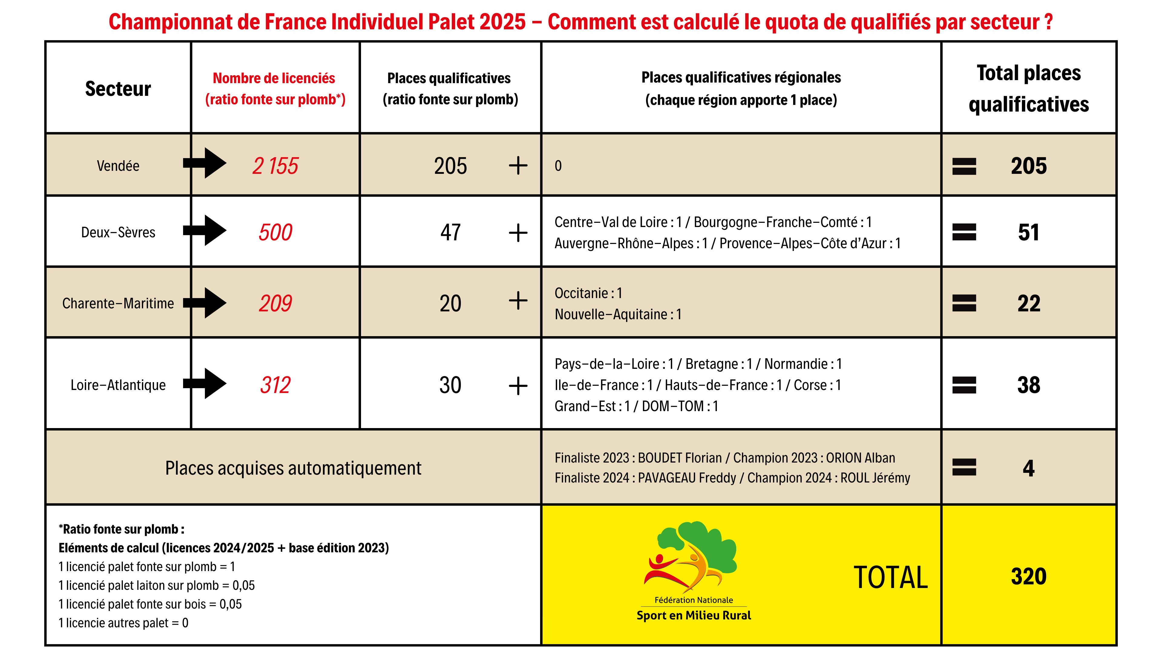 Pour les licenciés des secteurs : Loire-Atlantique / Pays de la Loire (hors 85) / Corse / Bretagne / Grand-Est / Hauts-de-France / Ile-de-France / Normandie / Outre-Mer